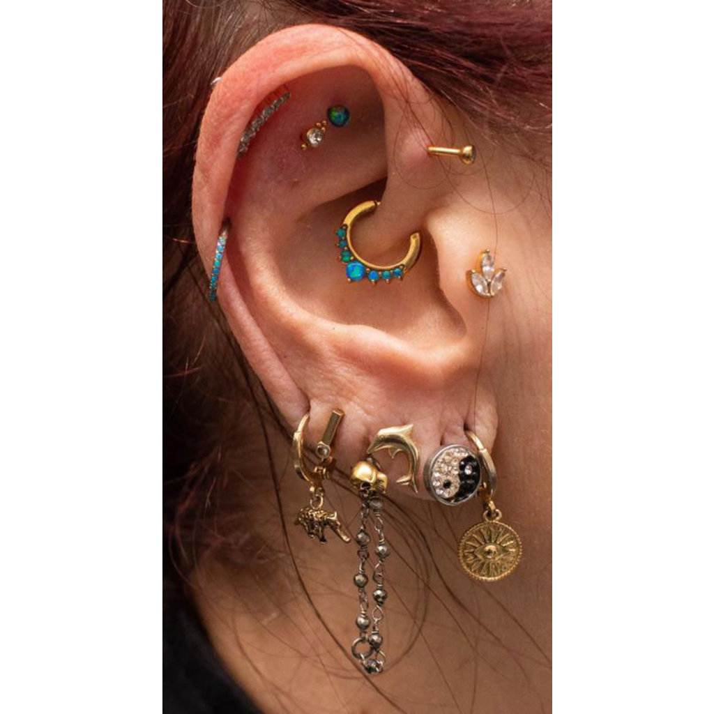 This beautiful piercing has an elegant design, accentuated with sparkling clear-white premium zirconia. Ideal for tragus but also very suitable for other ear piercings!