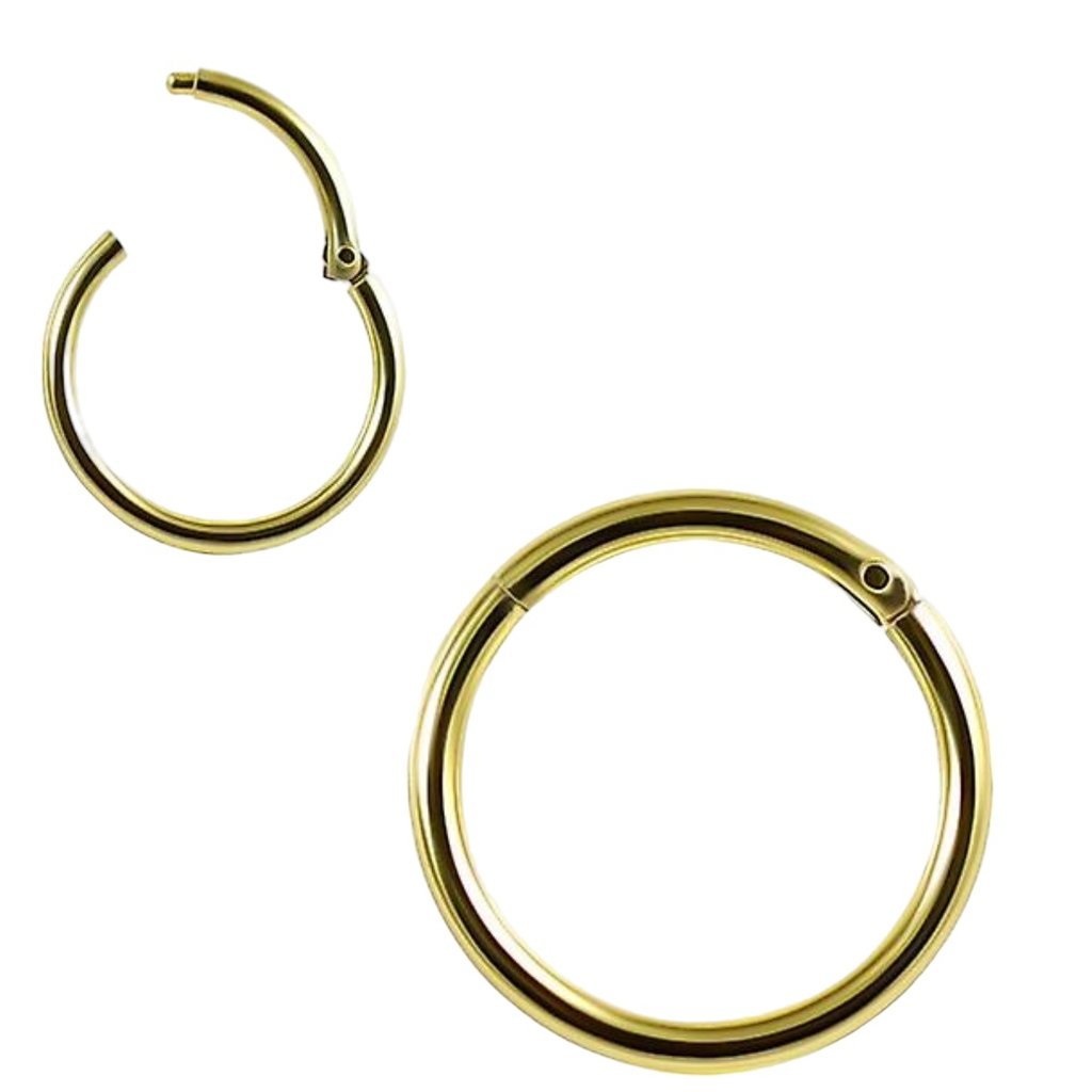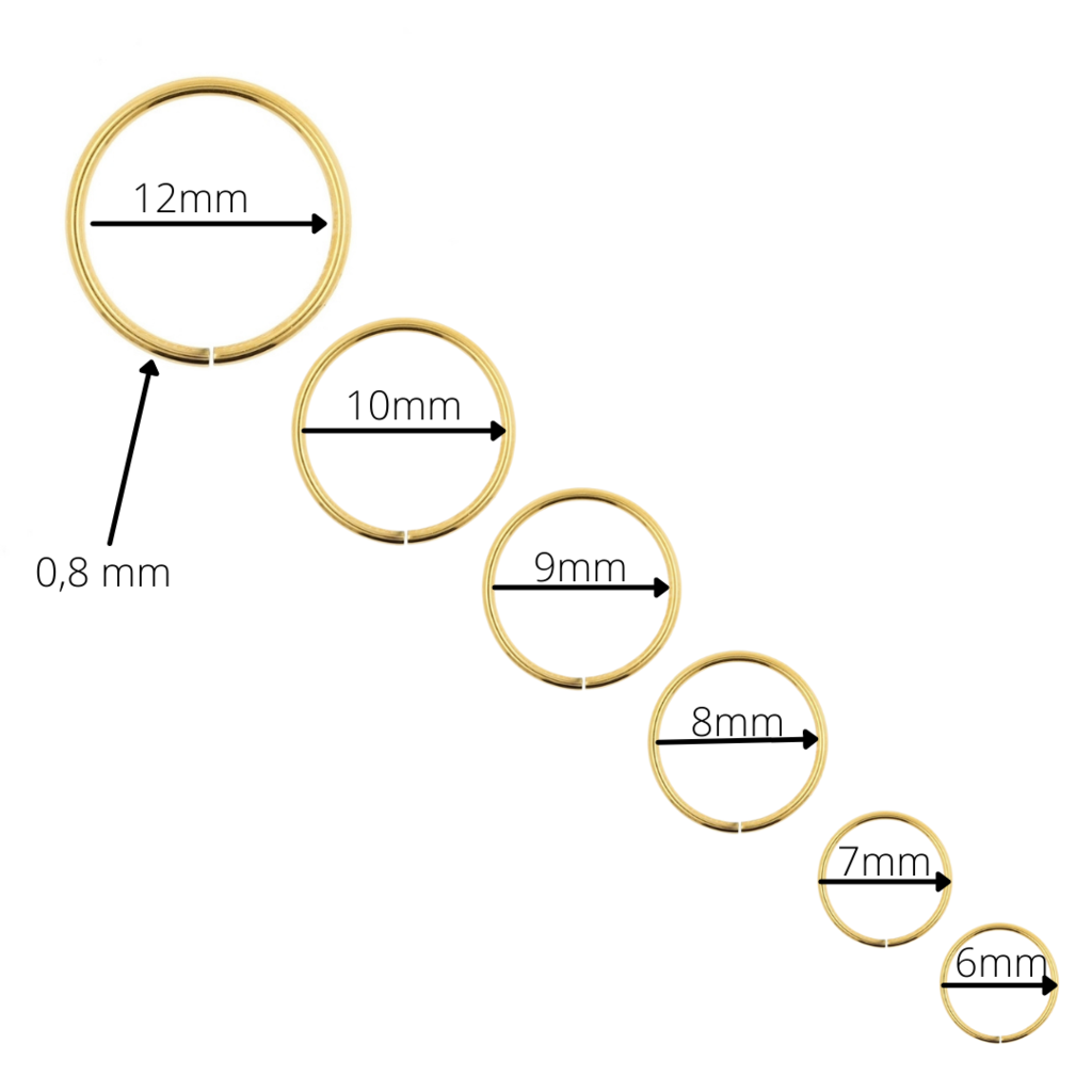 This gold plated nose ring has a classic look and is easy to put in and to take out. The ring has a thickness of 0.8mm and is available in 6 diameters.