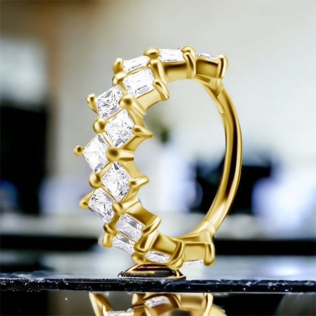 Ideal for conch but also suitable for other piercings! Beautiful and elegant this fashionista piercing ring features a stylish design set with sparkling premium zirconia.