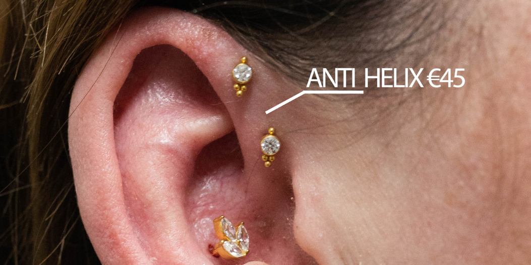 Bij Piercings Works in Amsterdam kost een anti-helix piercing €45. Deze prijs is inclusief steriele plaatsing, een kwalitatief startsieraad en duidelijke nazorginstructies. Er zijn geen verborgen kosten.