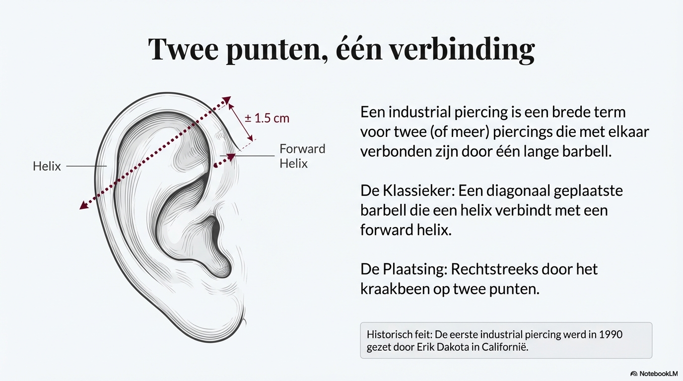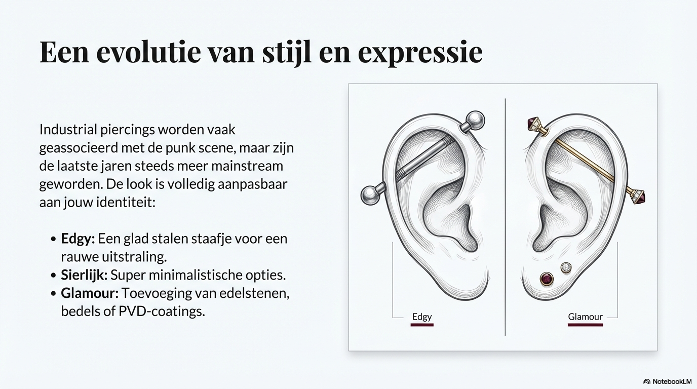 De industrial piercing is geen snelle trend, maar een doordachte constructie in kraakbeen. Met de juiste plaatsing, verzorging en sieraden is het een krachtige en duurzame vorm van zelfexpressie.