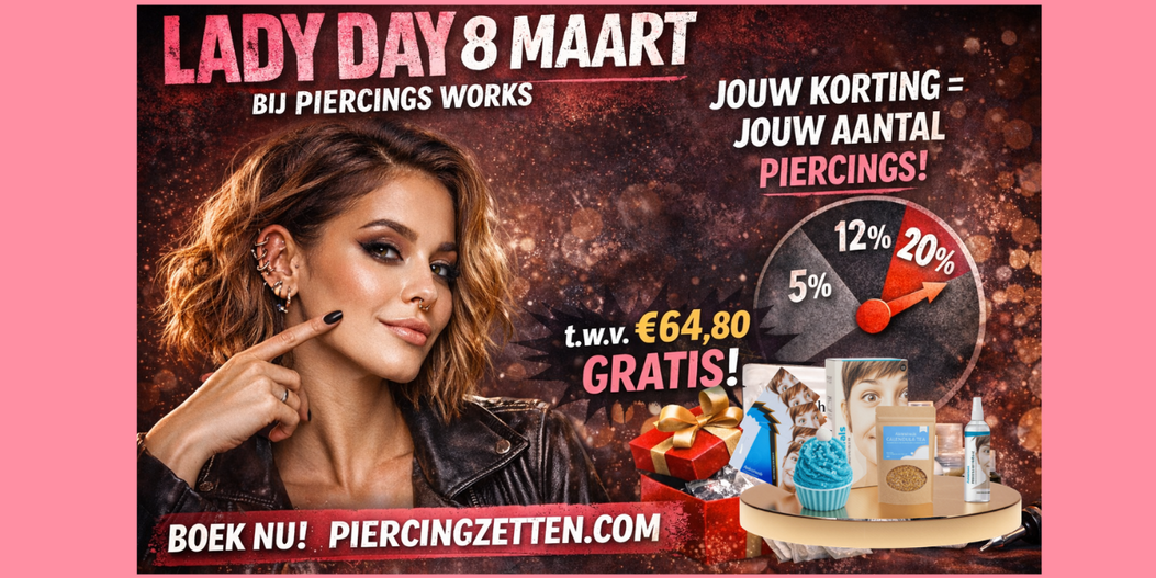 Kortom: zoveel piercings als je al hebt, zoveel % korting krijg je op 8 maart.