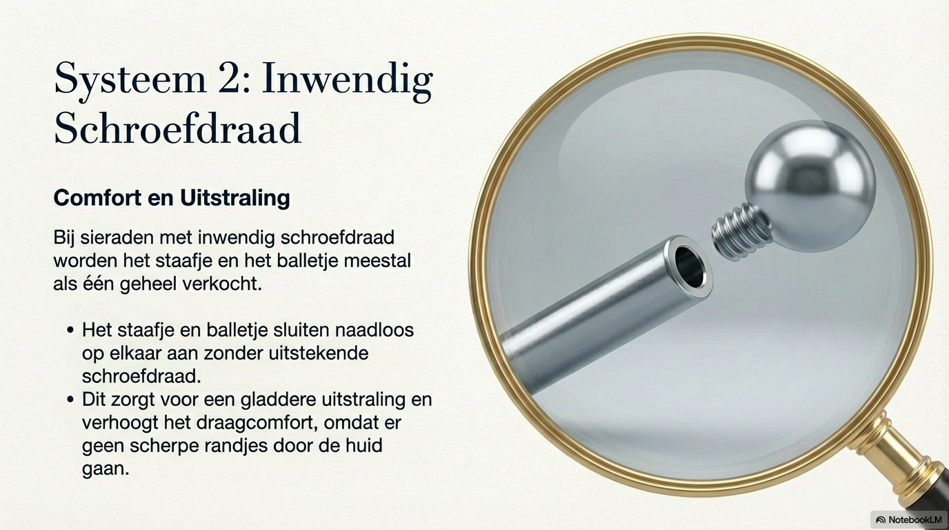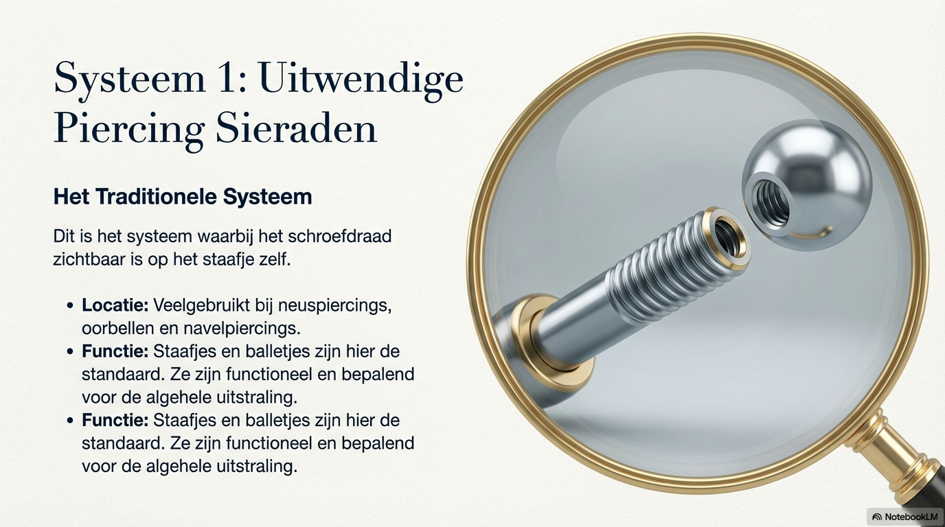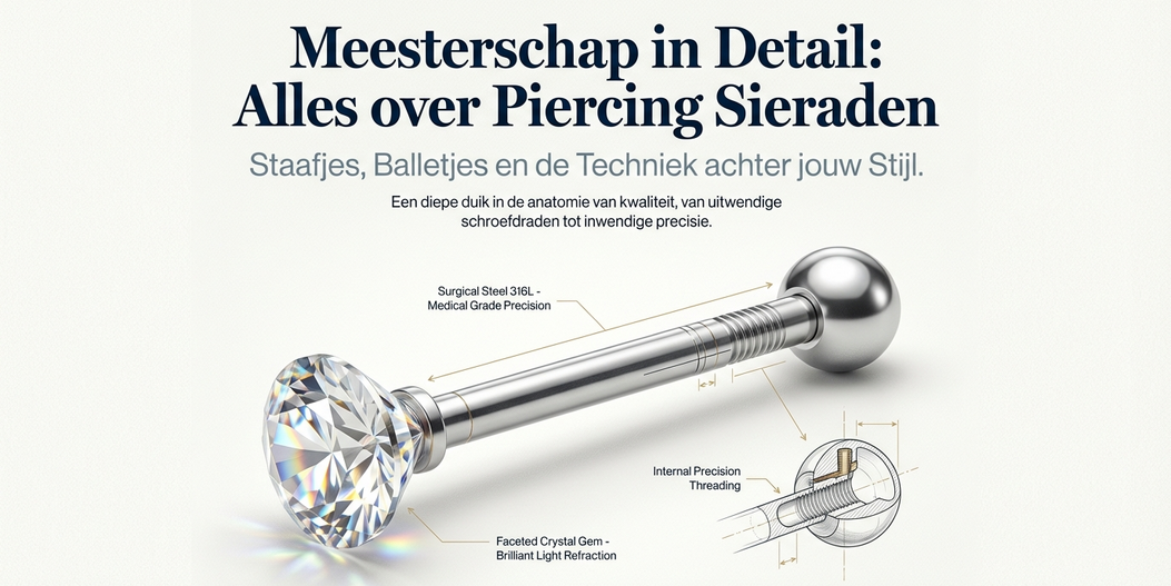 Piercingsieraden lijken eenvoudig: een staafje en een balletje. Maar wie ooit een balletje is kwijtgeraakt, een topje had dat nét niet paste of last kreeg van irritatie, weet dat techniek allesbepalend is. Het verschil tussen inwendig en uitwendig schroefdraad is geen detail, maar de kern van comfortabel en zorgeloos dragen.