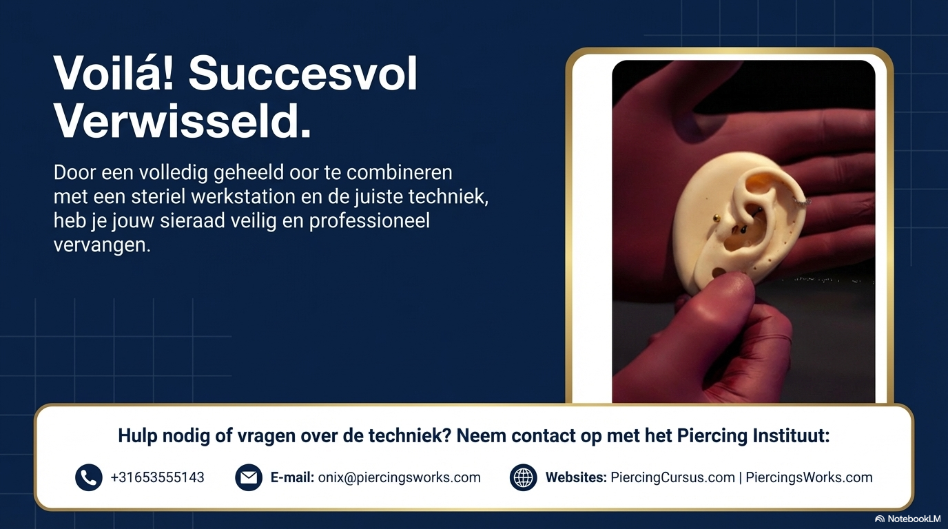 Werk daarom altijd volgens een eenvoudige checklist. Was je handen grondig en droog ze goed af. Controleer of het nieuwe sieraad de juiste dikte en lengte heeft. Dek de afvoer af of werk op een veilige plek. Leg je sieraad en alle benodigdheden klaar op een schoon oppervlak. Hoe beter je voorbereiding, hoe kleiner de kans op gedoe.