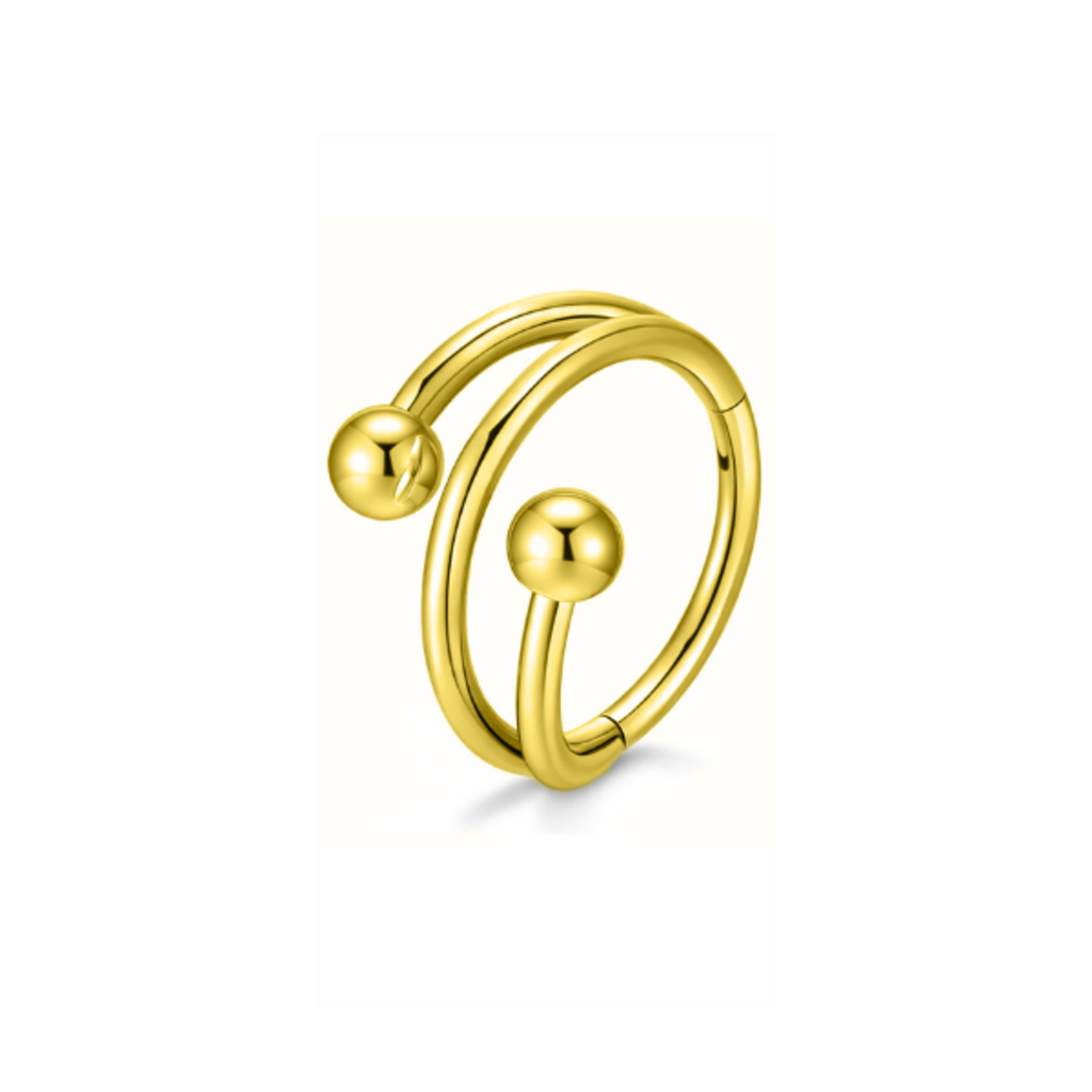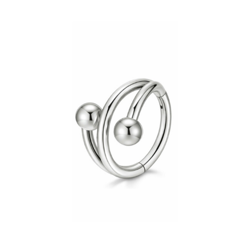This open spiral ear piercing is crafted from implant-grade titanium and features a smooth, flowing design with polished ball ends. The layered spiral shape gives the ring a subtle statement look while remaining lightweight and comfortable.