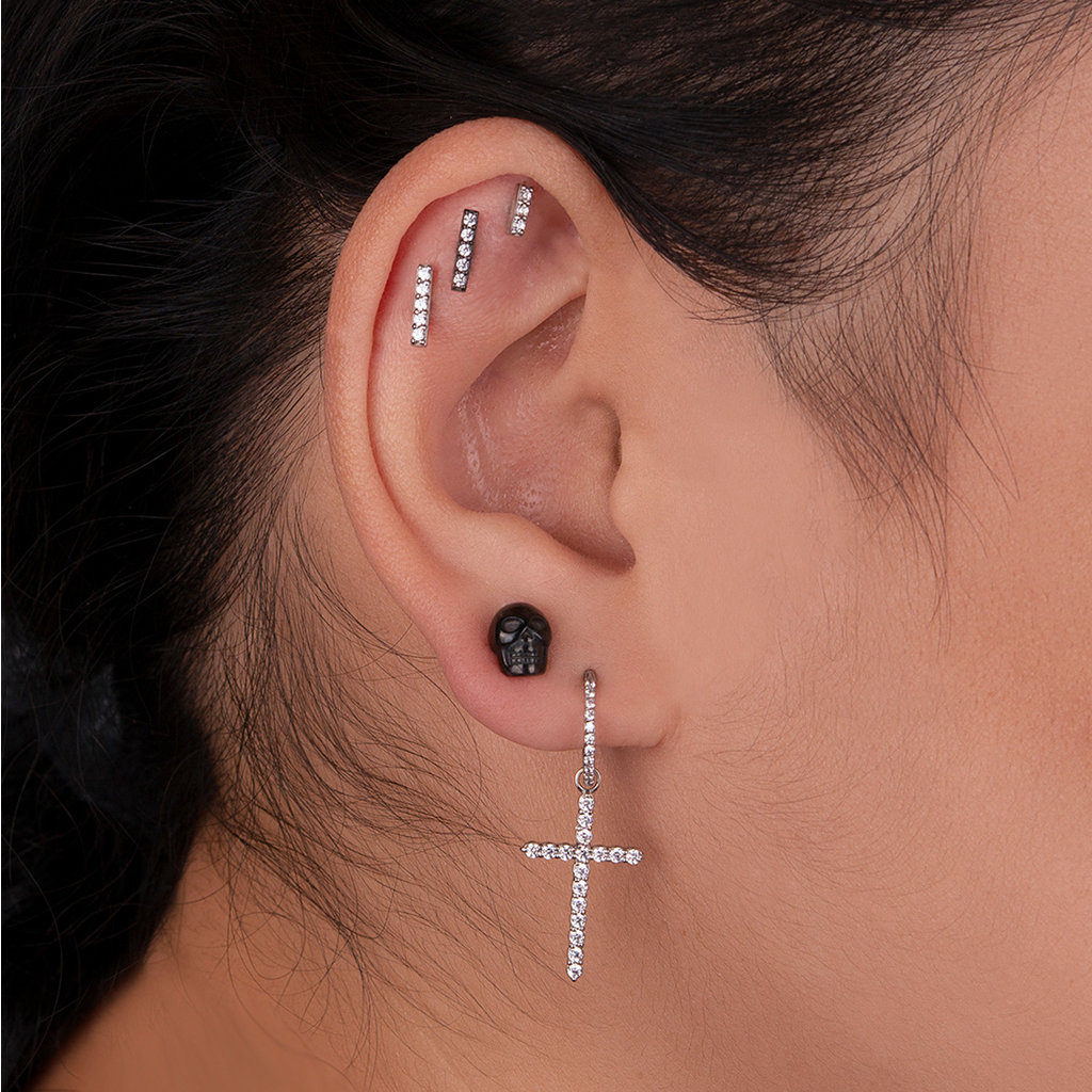 This beautiful barbell has an elegant design, accentuated with sparkling clear-white premium zirconia. The barbell has a thickness of 1,2mm and a length of 8mm. Ideal for tragus but also very suitable for other ear piercings!