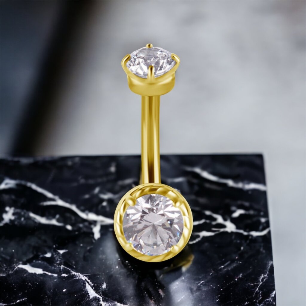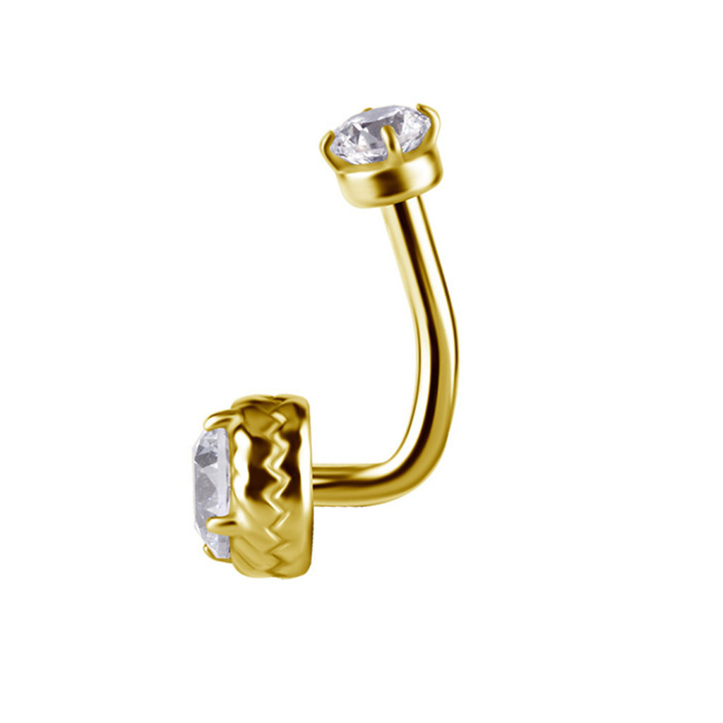 The piercing is made of surgical steel 316L and coated with a wear resistant 24K Gold PVD.