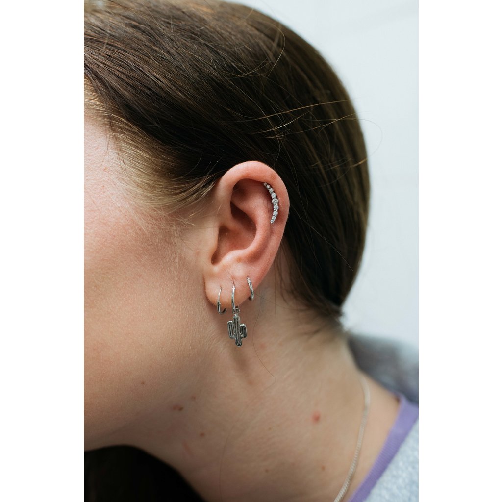 Ideal for the helix but also suitable for other ear piercings! This lovely piercing features an crescent design which is inlaid with zirconia. The piercing has the length of 8mm and thickness of 1,2mm. The crescent attachment on the front has a diameter
