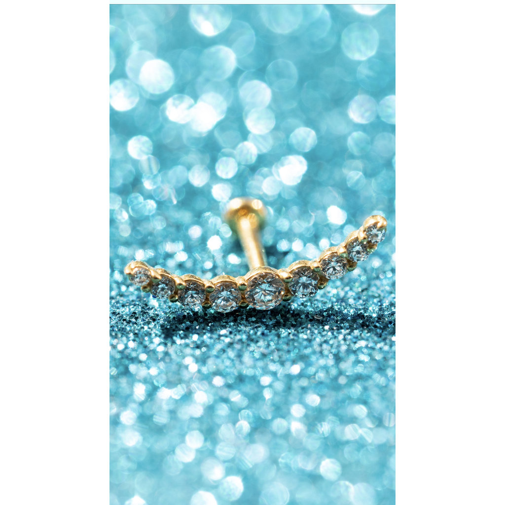 This lovely piercing features an crescent design which is inlaid with zirconia. The piercing has the length of 8mm and thickness of 1,2mm. The crescent attachment on the front has a diameter of 16,5mm.