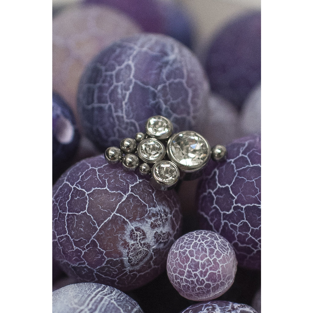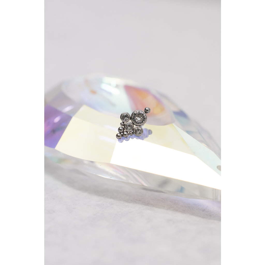 This beautiful barbell has an elegant design, accentuated with sparkling clear-white premium zirconia. The barbell has a thickness of 1,2mm and a length of 10mm. Ideal as tragus, helix but also suitable for other piercings!