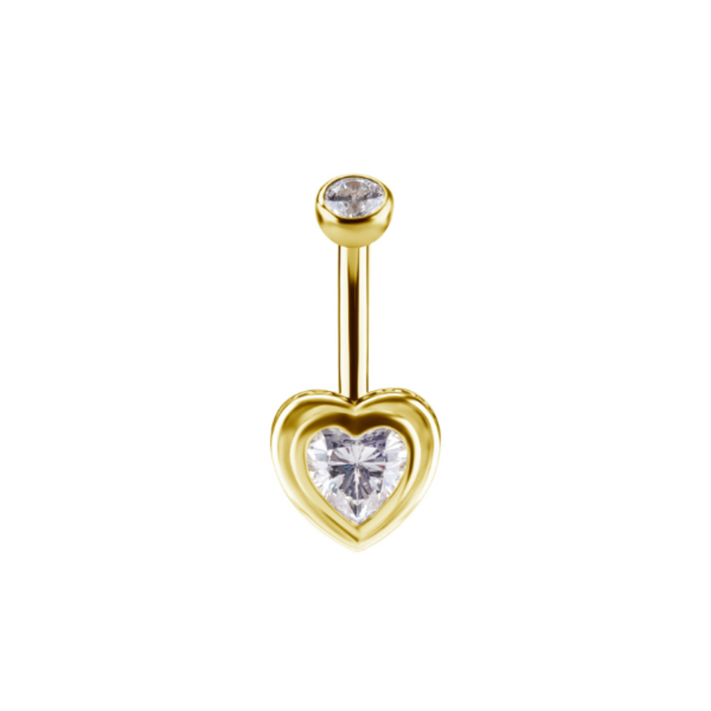 Elegant 18 Karaat Gouden Navelpiercing met Hartvormige Premium Zirkonia
