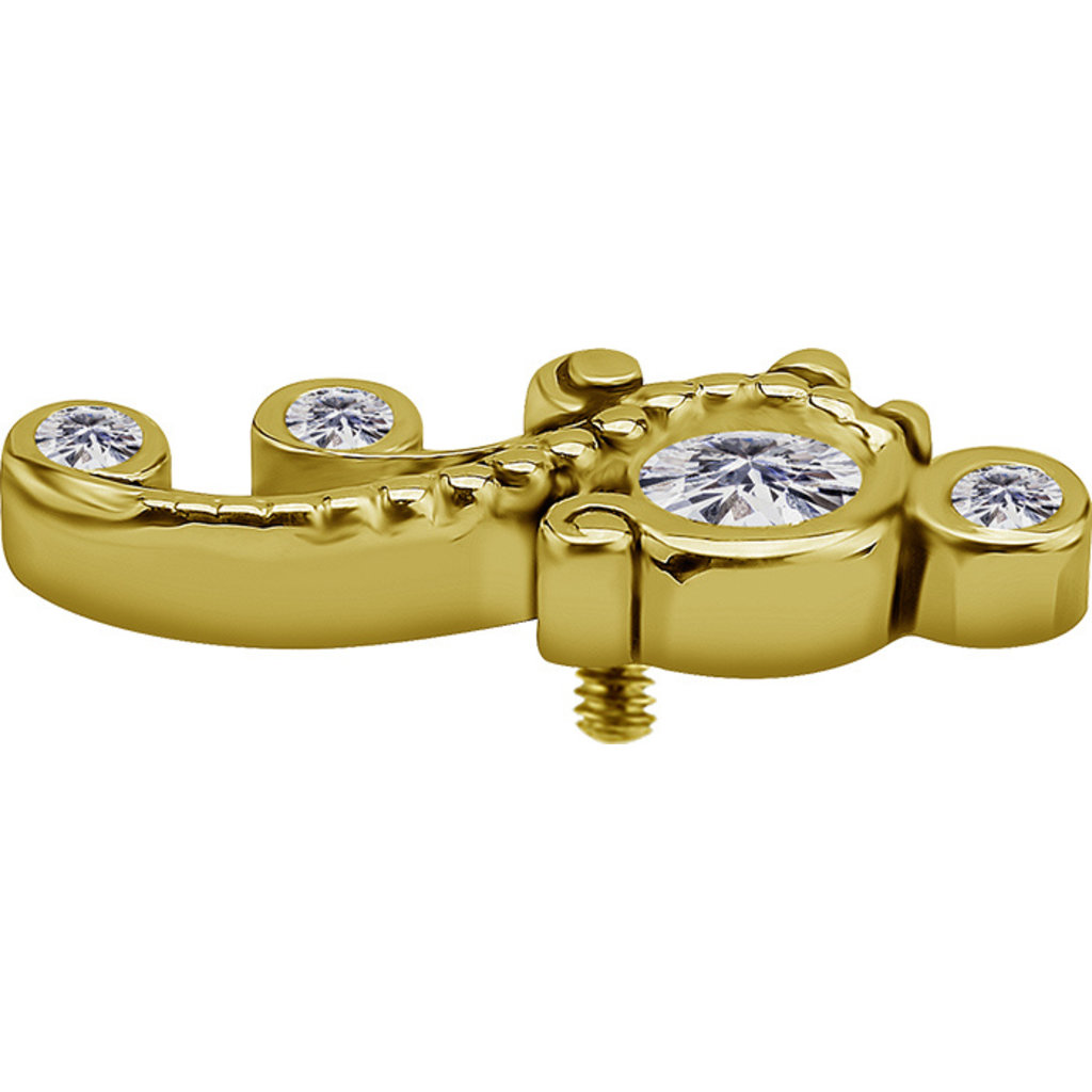Deze massief gouden intern geschroefde top heeft prachtige organische vormen ingelegd met sprankelende helderwitte premium zirconia.