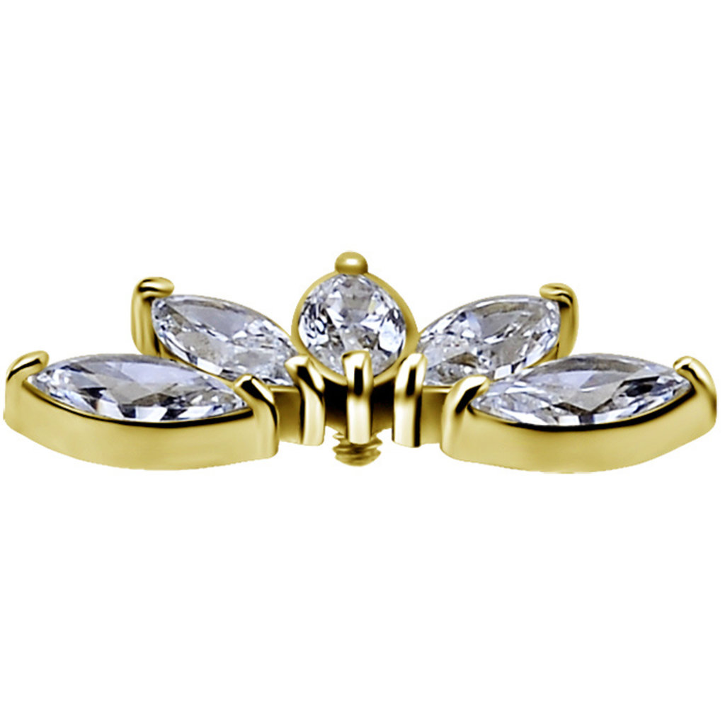 Deze massief gouden intern geschroefde top heeft een sprankelend design welke ingelegd is met helderwitte premium zirkonia.