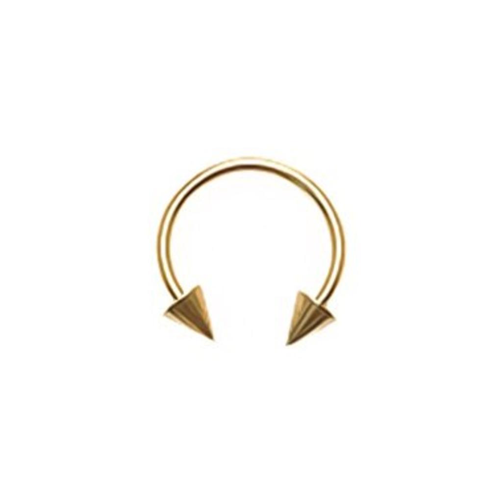 Geschikt voor diverse lichaamspiercings! Deze vergulde circular barbell heeft toffe cones! Het staafje heeft een dikte van 1,2mm en is verkrijgbaar in de diameters: 6mm, 8mm, 10mm en 12mm. Daarnaast hebben de afschroefbare cones elk een diameter van 3m