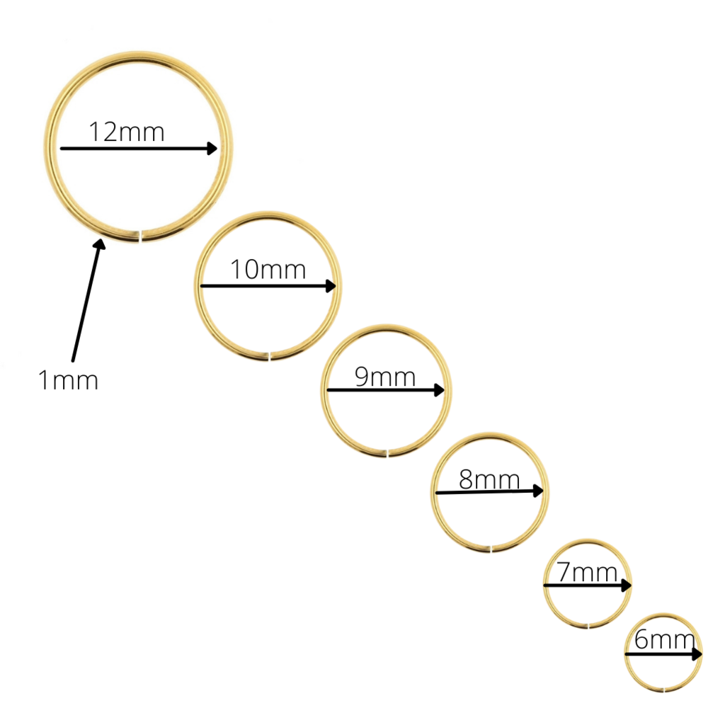 Deze vergulde seamless neus ring heeft een klassieke look en is eenvoudig in en uit te doen. De ring heeft een dikte van 1mm en is verkrijgbaar in 6 diameters.