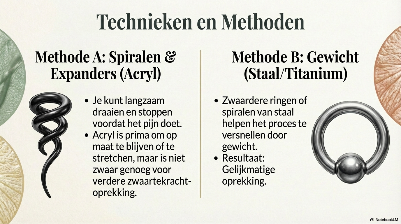16. Met acryl spiralen en expanders gaat stretchen wel erg goed omdat je dan langzaam kunt draaien en kunt stoppen voordat het pijn begint te doen.