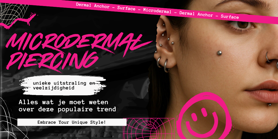 Een microdermal piercing is een speciaal type piercing waarbij een klein sieraad (anchor) onder de huid wordt geplaatst. Alleen het topje van het sieraad is zichtbaar aan de oppervlakte, wat zorgt voor een stijlvolle, subtiele look. Het fijne aan deze piercing is dat je hem bijna overal kunt laten zetten: op je gezicht, nek, handen, sleutelbeen of zelfs dijen.