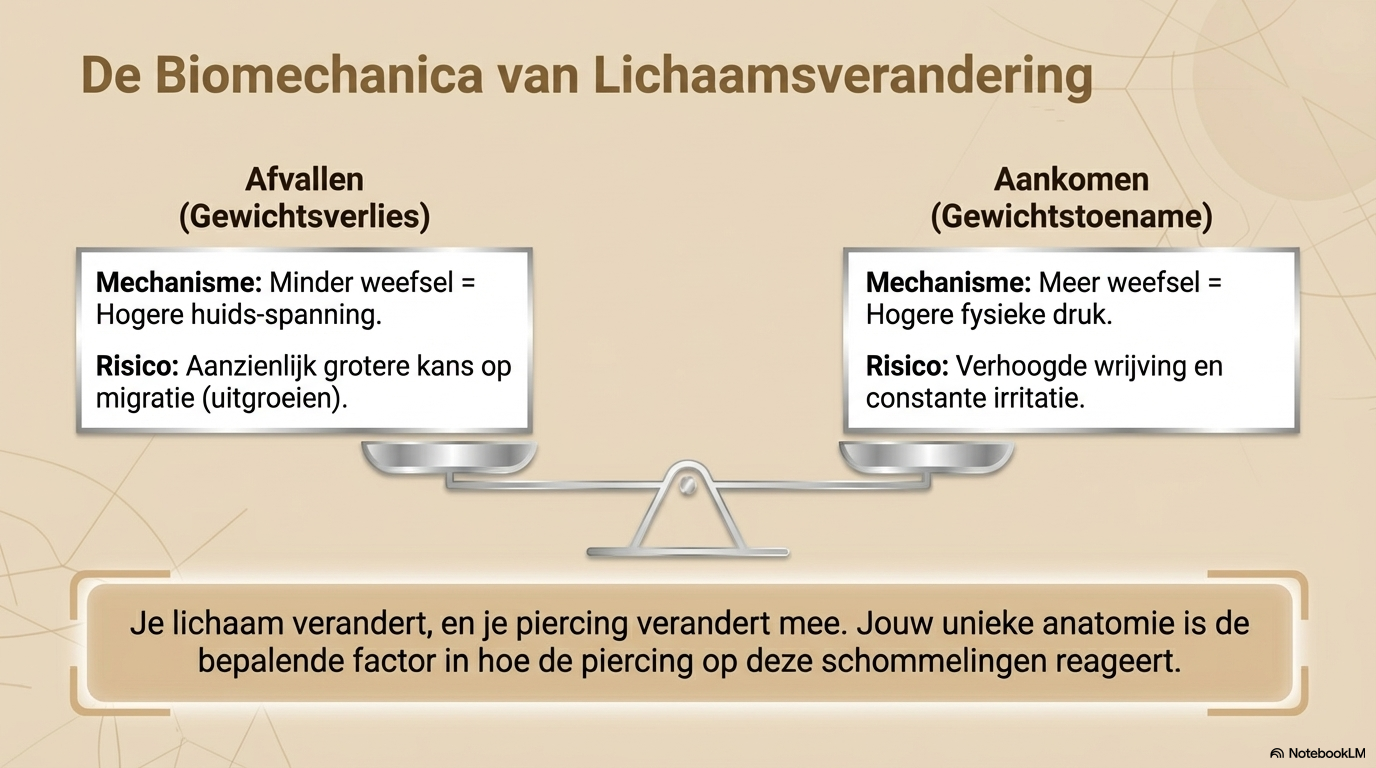 Je lichaam verandert en je piercing verandert mee.