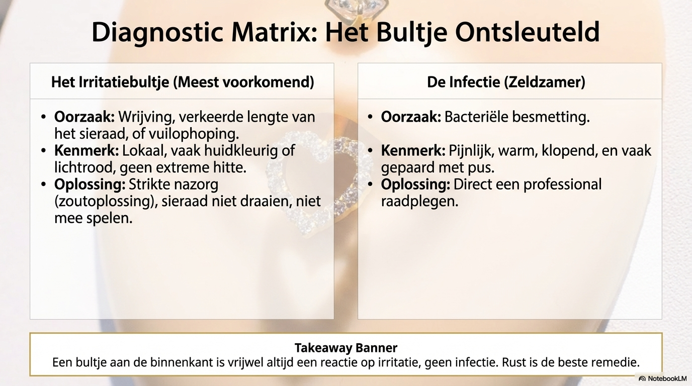 Dit betekent niet altijd dat de piercing fout zit, maar wel dat hij anders kan genezen dan verwacht.