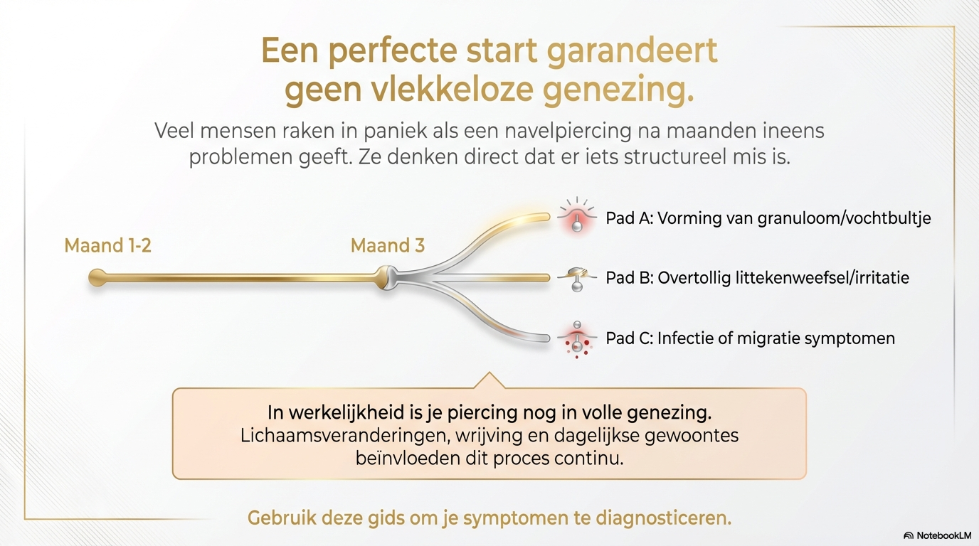 Een navelpiercing kan in het begin perfect genezen… en toch maanden later problemen geven.Veel mensen denken dan meteen dat er iets mis is — maar dat is niet altijd zo.