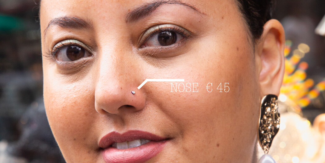 duizenden nose piercings, op verschillende gezichten en huidtypes