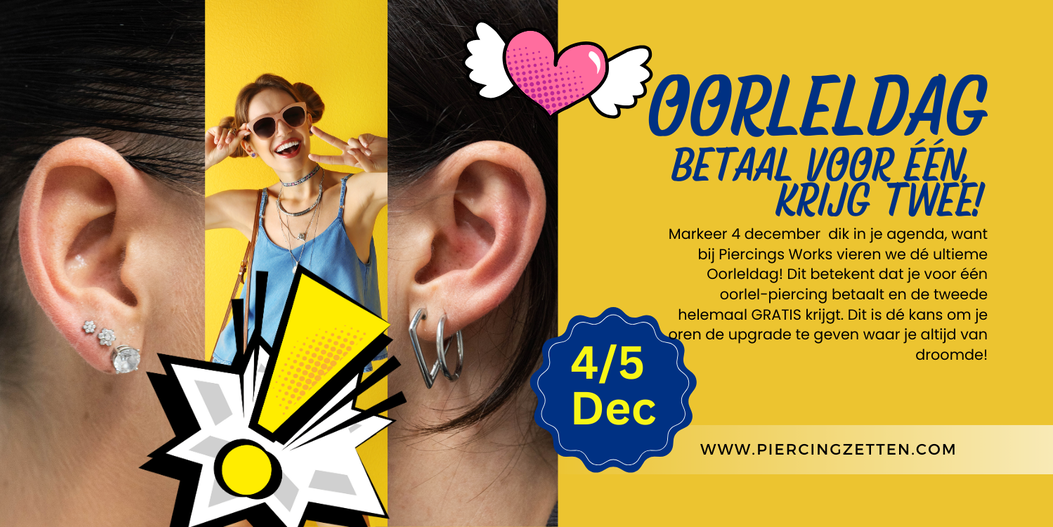 Wil je je oorlellen upgraden, nieuwe piercings toevoegen of gewoon profiteren van een geweldige aanbieding? Kom dan op 4 en 5 deceber langs bij Piercings Works en laat je oren stralen!