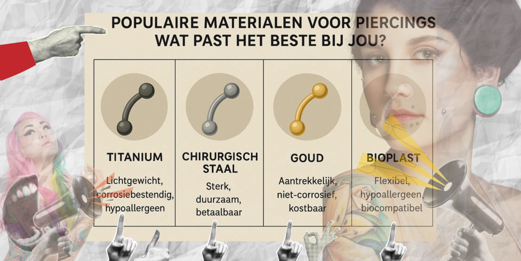 In deze blog geven we je een helder overzicht van de drie meest populaire materialen: titanium, chirurgisch staal en goud. We leggen uit wat hun voor- en nadelen zijn én hoe je een mogelijke allergie herkent.