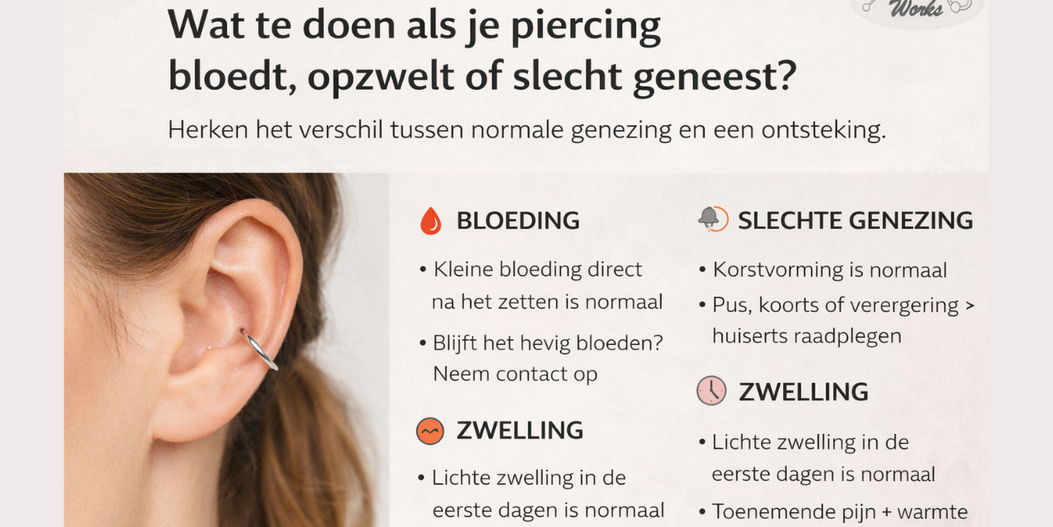 Conclusie: Luister goed naar je lichaam. De meeste piercingproblemen zijn eenvoudig op te lossen als je op tijd reageert en je goed laat begeleiden. En weet: je staat er niet alleen voor. Team PiercingsWorks staat voor je klaar.