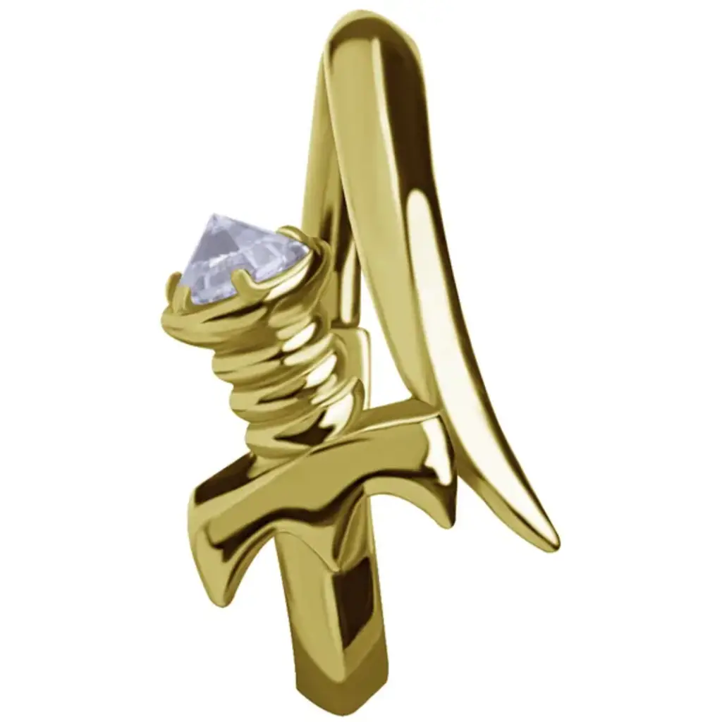 Golden Sword Conch Piercing van CoCr nikkelvrije legering met 18K Gold PVD & Premium Cubic Zirconia – Limited Edition 2026 | Piercings Works