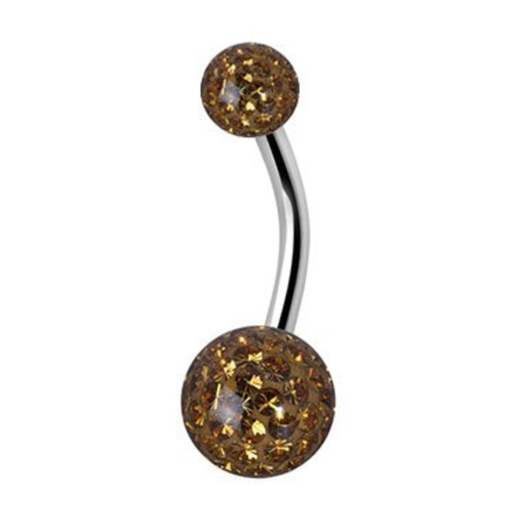 Prachtig, elegant en simpel! Deze sprankelende navelpiercing ingelegd met bruine goud premium zirkonia kristallen past bij elke bikini.