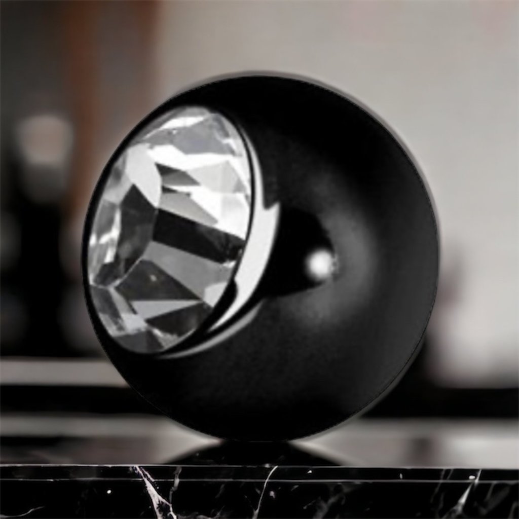 Dit zwart stalen piercing balletje is ingelegd met een sprankelend helder-wit kristalletje.