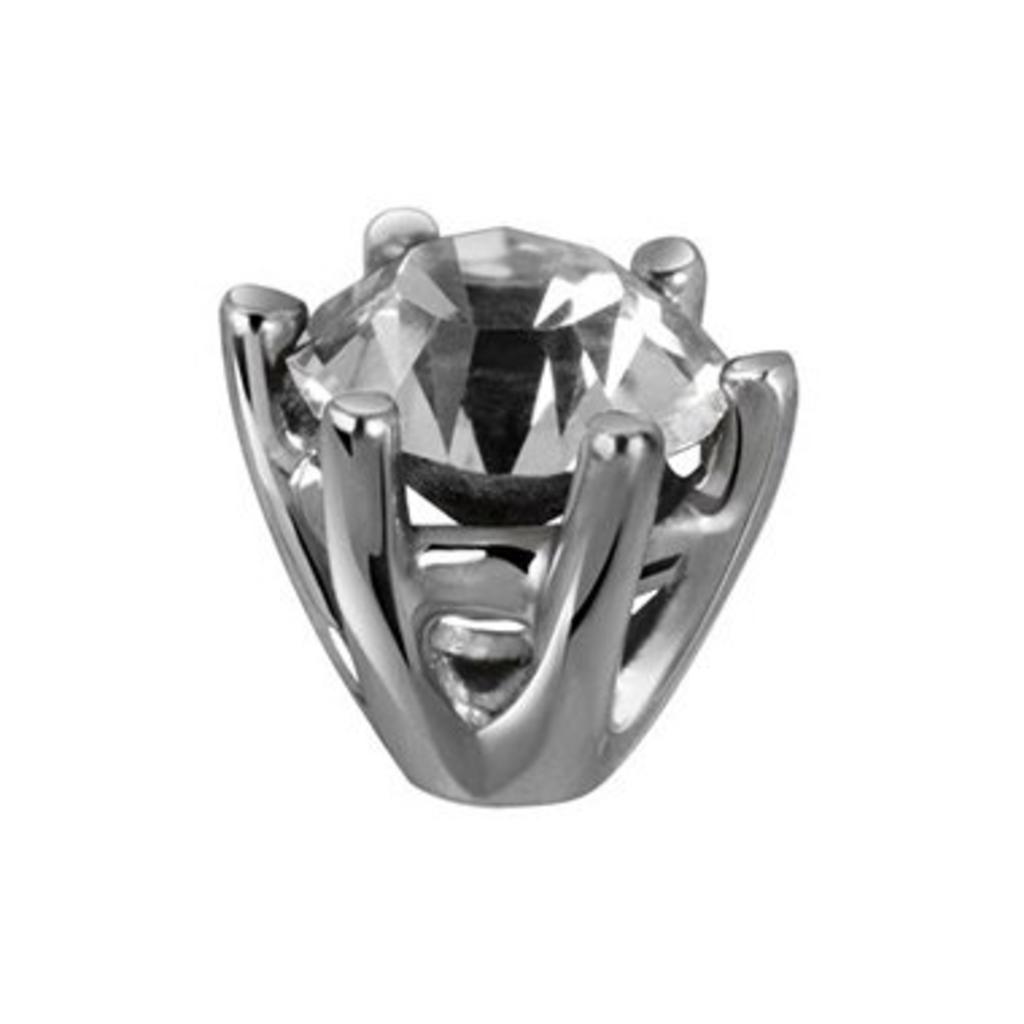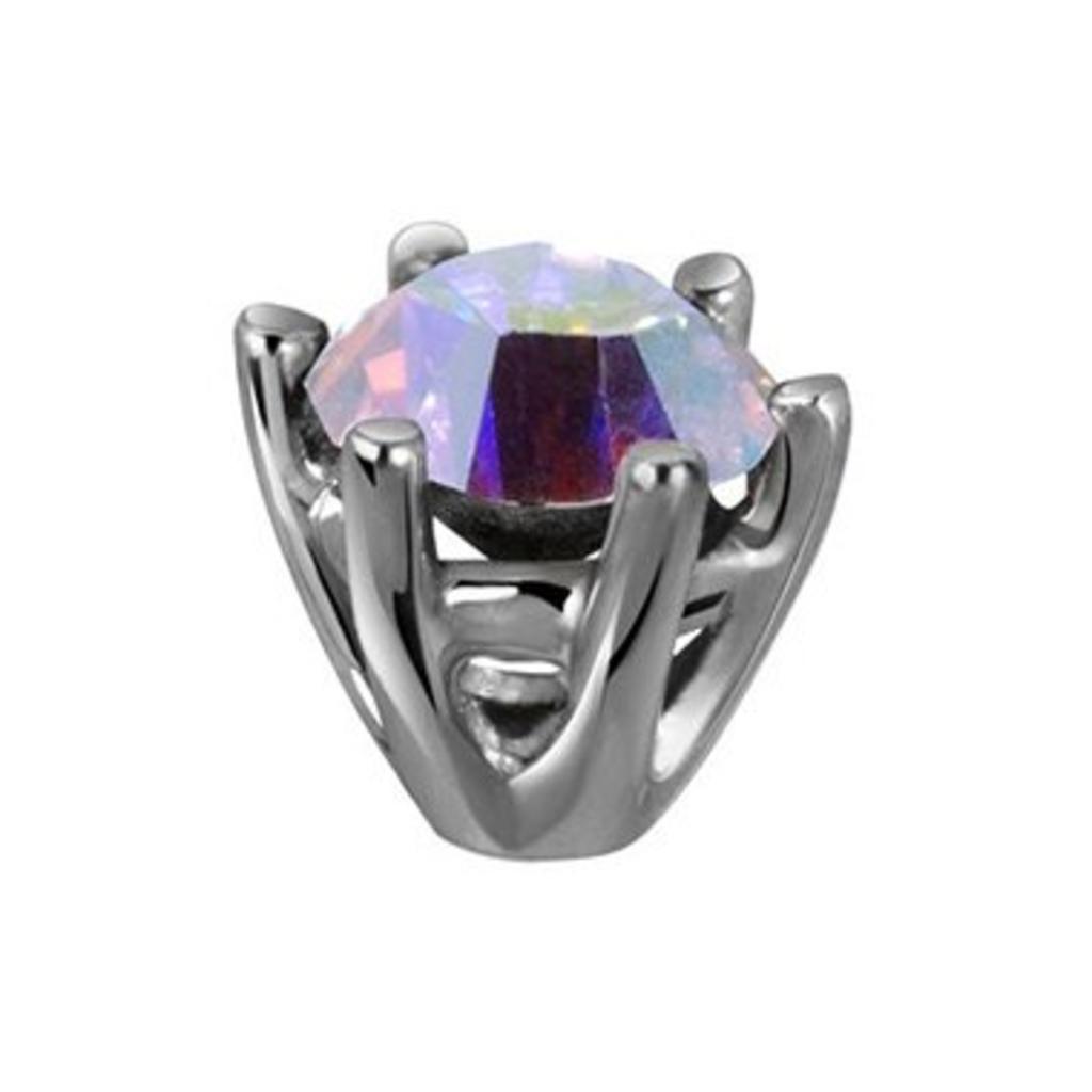 Dit zilver kleurig piercing "balletje" is ingelegd met een sprankelend kristalletje. Daarnaast is het geheel voorzien van een inwendig schroefdraad, bedoeld voor diverse soorten staafjes met een dikte van 1.6mm.