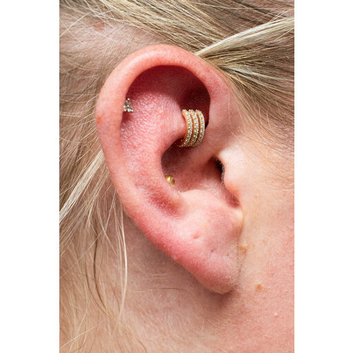De piercing is vervaardigd uit CoCr NF en afgewerkt met een slijtvaste 18K Goud PVD coating.