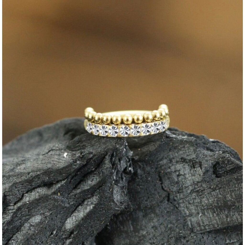 Schitterende chirurgisch stalen helix piercing ring met stalen balletjes en heldere witte stenen voor diverse oorpiercings!