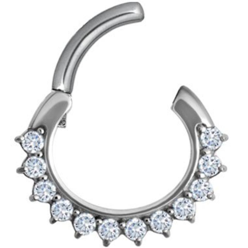 Ideaal voor septum maar ook erg geschikt voor andere lichaamspiercings! Deze schitterende piercing ring heeft een elegante design welke ingelegd is met zirkonia kristalletjes. De ring makkelijk te bevestigen en los te koppelen vanwege het eenvoudige