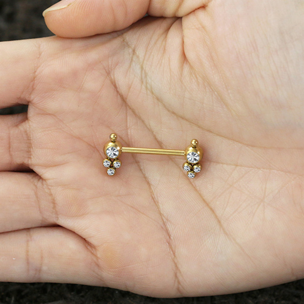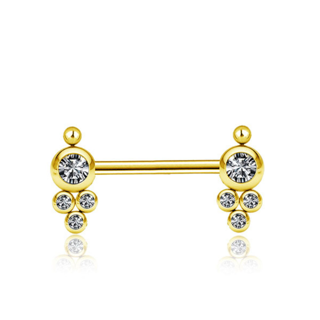Voeg een vleugje elegantie toe aan je sieradencollectie met deze prachtige tepelpiercing.
