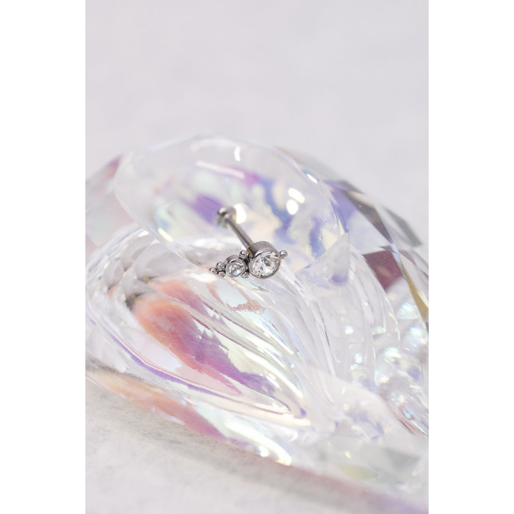 Deze prachtige barbell ziet er zeer chique uit en met de ingelegde helderwitte premium zirkonia zal deze piercing schitteren aan je oor. Het staafje heeft een dikte van 1,2mm en een lengte van 10mm. Ideaal voor tragus, helix maar ook erg geschikt voor andere piercings.